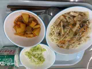 【図書委員会発表】 朝は、図書委員会による発表でした。 オンラインで図書委員会の紹介や図書委員会が設定した企画などの説明をするとともに、クイズを取り入れた本の紹介を行いました。 【6年生 武蔵野市民科の取組】 6年生は、関八親交会の方にゲストティーチャーに来ていただき、関前のかつての関前について教えていただきました。 6年生の学びは進んでいます。この後、第2段階に入ります。 【4ー2栄養指導】 4年生向けの栄養指導がありました。 金曜日に、ほかの2クラスも行います。 【実習生研究授業】 教育実習が始まり4週目となりました。学びを生かす研究授業を行いました。授業後には協議会を行い、先生たちから助言がありました。実習期間も残りわずかですが、学びをさらにひろげてほしいものです。 【今日の給食】 〇五目あんかけ焼きそば(めん・具) 〇じゃがいもとウインナーのトマト煮 〇しょうがしおキャベツ 〇牛乳【添付ファイル】